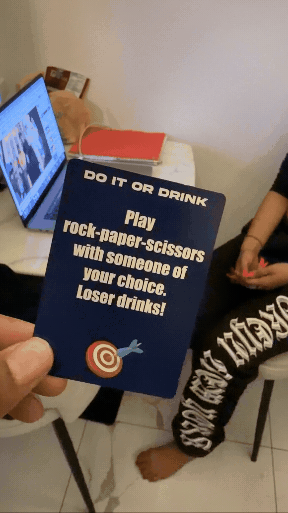 • 7 games in 1 — dares, confessions, group triggers, charades, challenges, and wildcards. The energy never dies.